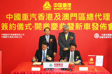 马纯济指出,大昌行集团是具有六十多年历史的港澳地区最具实力的汽车经销企业之一,经销世界知名品牌的商用车,拥有非常专业的销售团队和非常完善的售后服务网络,连续十年保持欧洲商用车在港销售领先地位。此次交付的“SINOTRUK”欧五重卡是中国重汽自主创新、拥有完全知识产权的产品,其技术领先性、质量可靠性、动力经济性、安全舒适性均代表我国重卡行业最高水平。中国重汽与大昌行集团通过真诚合作、共同努力,必将实现共赢发展,必将在港澳地区打响民族汽车品牌,必将为振兴民族汽车工业和港澳经济建设做出新的更大贡献。