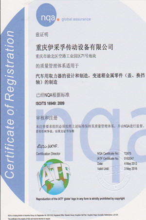 2013年3月27日,国际认证机构NQA委派资深注册审核员,对我公司进行了为期三天的TS16949:2009质量管理体系监督认证审核。审核员通过走访现场、查阅资料、监控过程、记录验证、访问负责工作人员等多种模式,对公司的TS16949:2009质量管理体系工作自2012年4月到2013年3月的运行情况进行了全面、认真、多方位、深层次的检查。最终通过客观的资料、数据和现场检查的符合性,审核员对公司的产品设计开发、过程控制和经营管理服务等方面进行了综合审查,最终确认通过了本次审核的认可。
